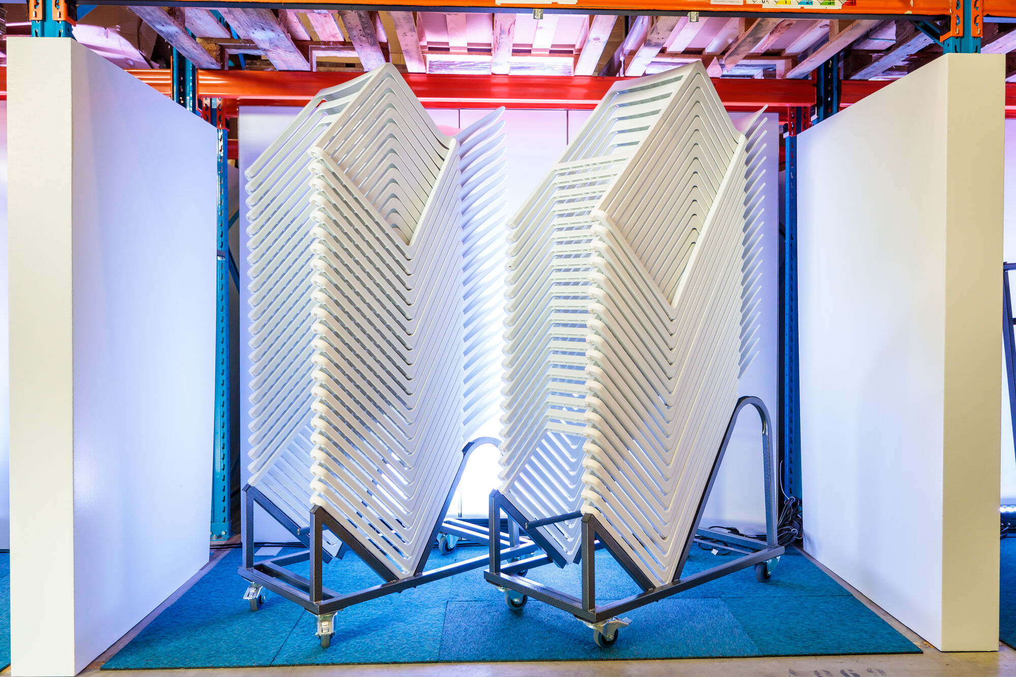 Les chaises Kasar peuvent être rangées et déplacées rapidement et facilement grâce au chariot de transport fourni. Placez jusqu'à 30 chaises sur le chariot de transport. De cette façon, les chaises peuvent être immédiatement rangées et protégées en toute sécurité et avec soin. Le chariot de transpor