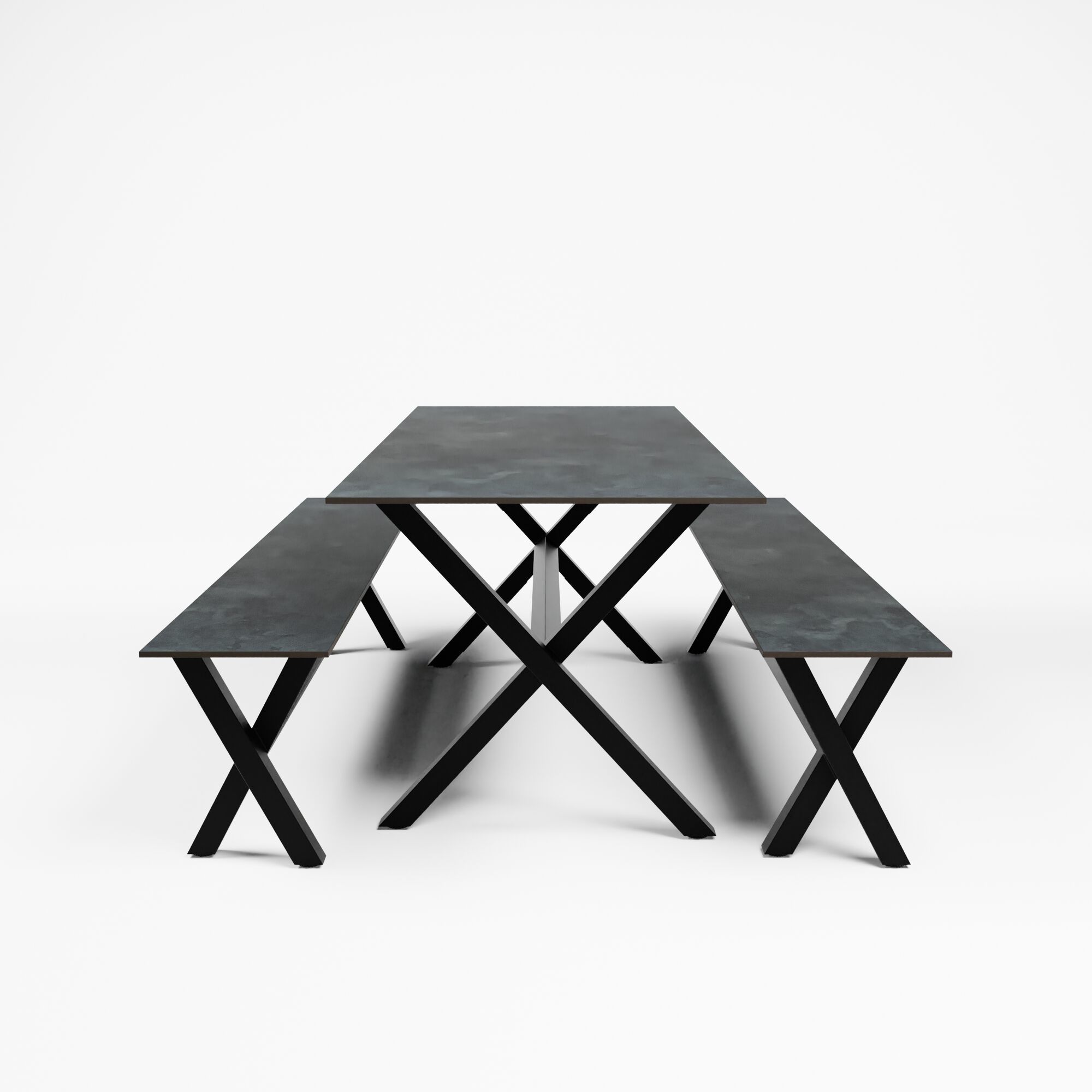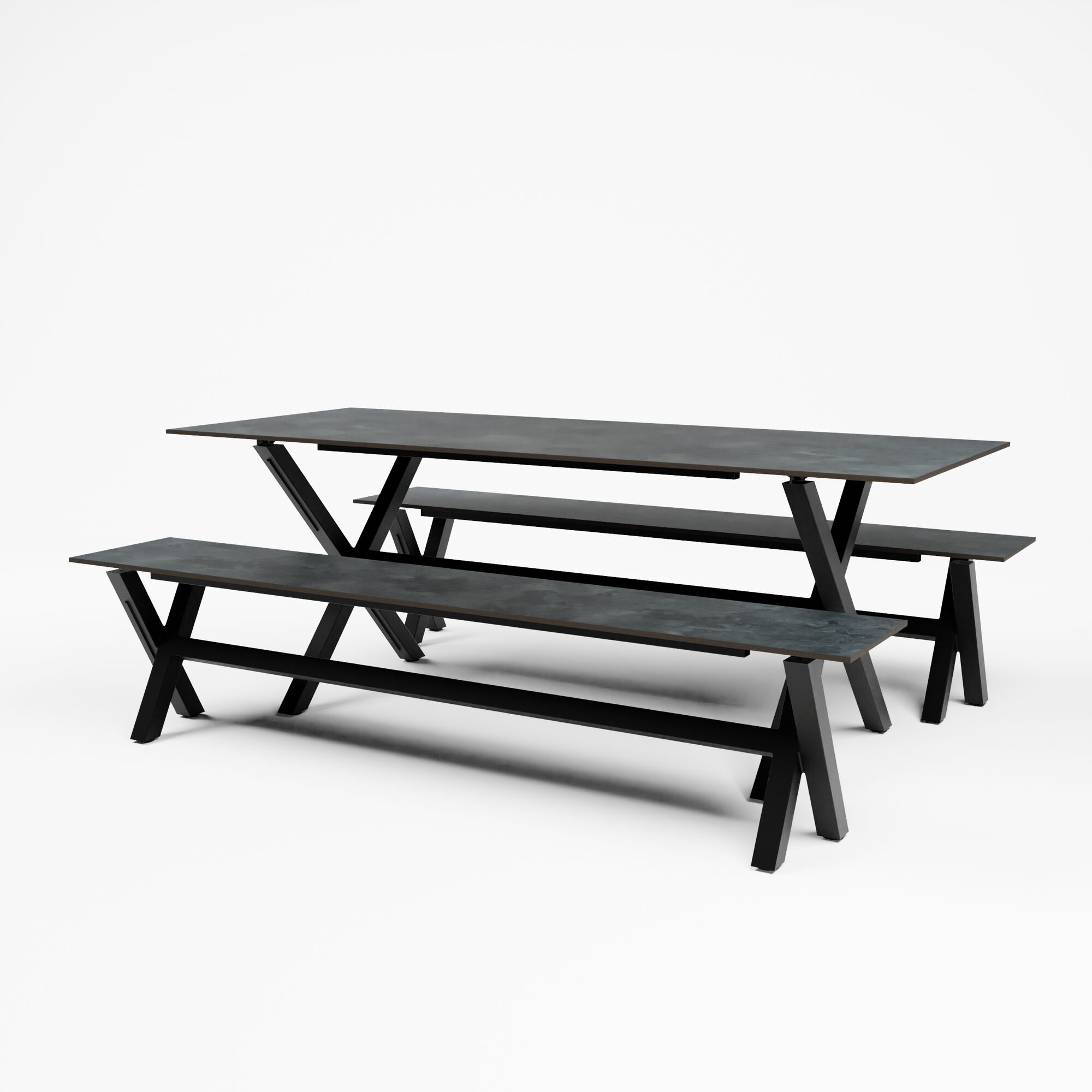 Empilable Cadres en aluminium Plateaux de table interchangeables Utilisation intérieure et extérieure Plateau : 200x80x74 cm Banc : 200x35x47,5 cm Ensemble = 1 table + 2 bancs