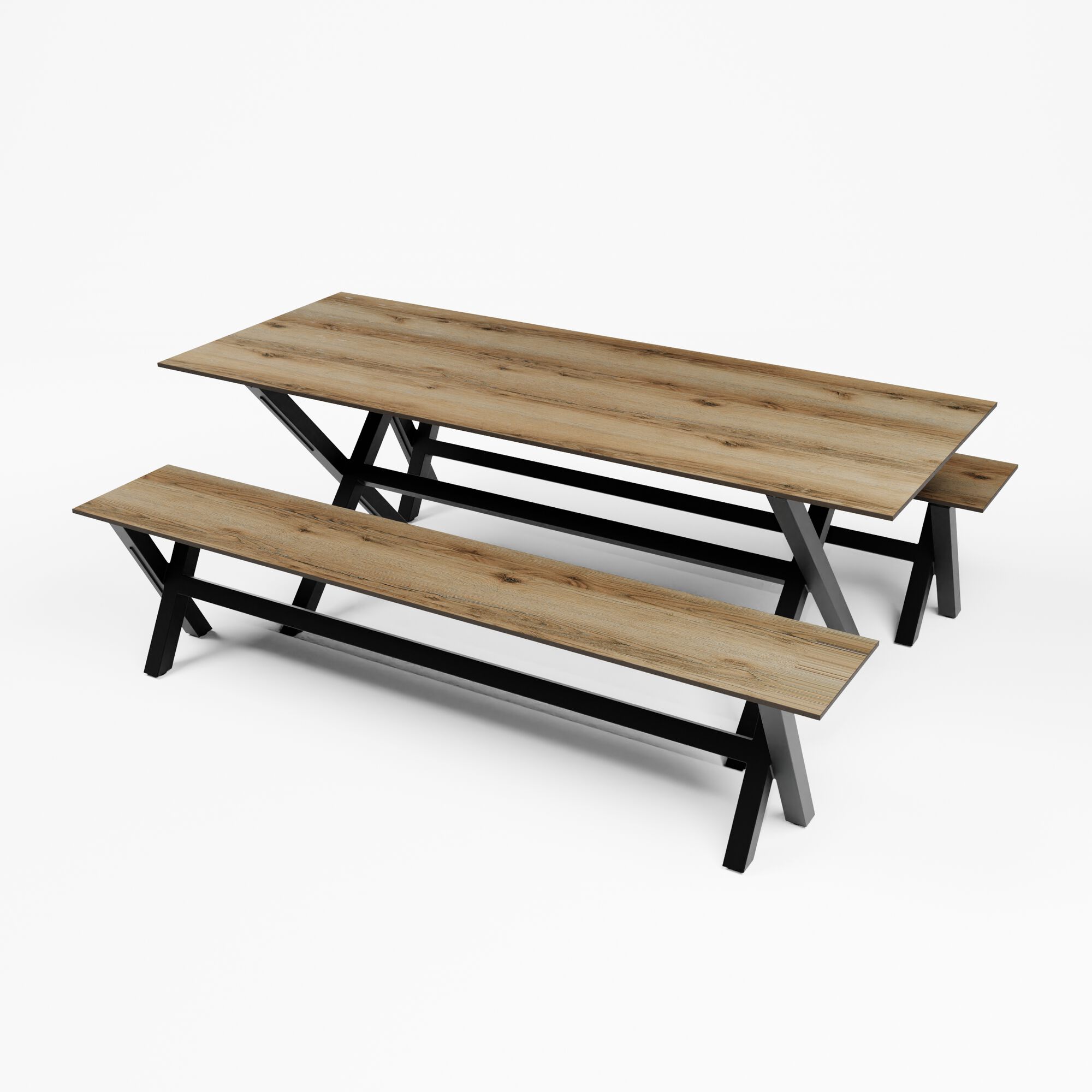Empilable Cadres en aluminium Plateaux de table interchangeables Utilisation intérieure et extérieure Plateau : 200x80x74 cm Banc : 200x35x47,5 cm Ensemble = 1 table + 2 bancs