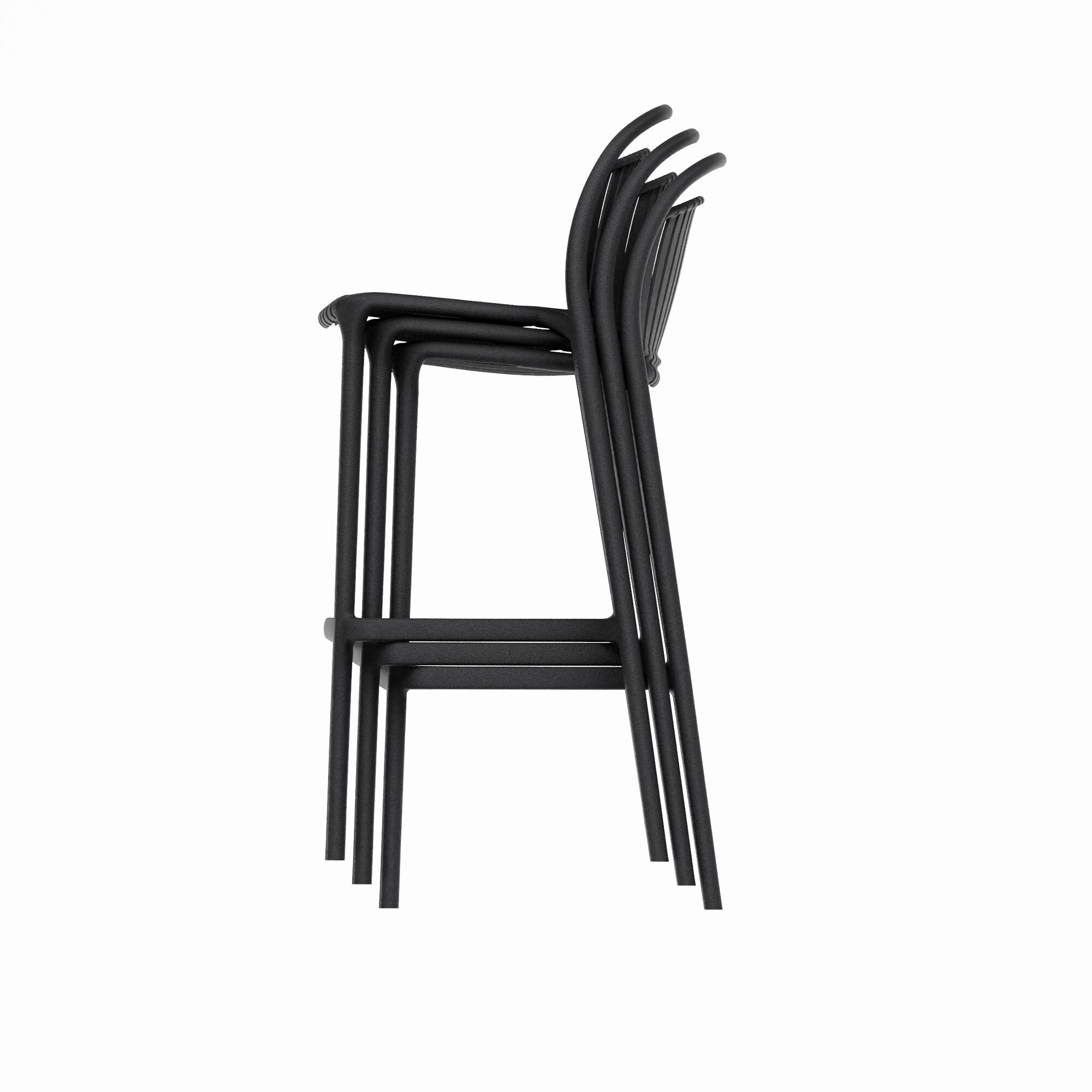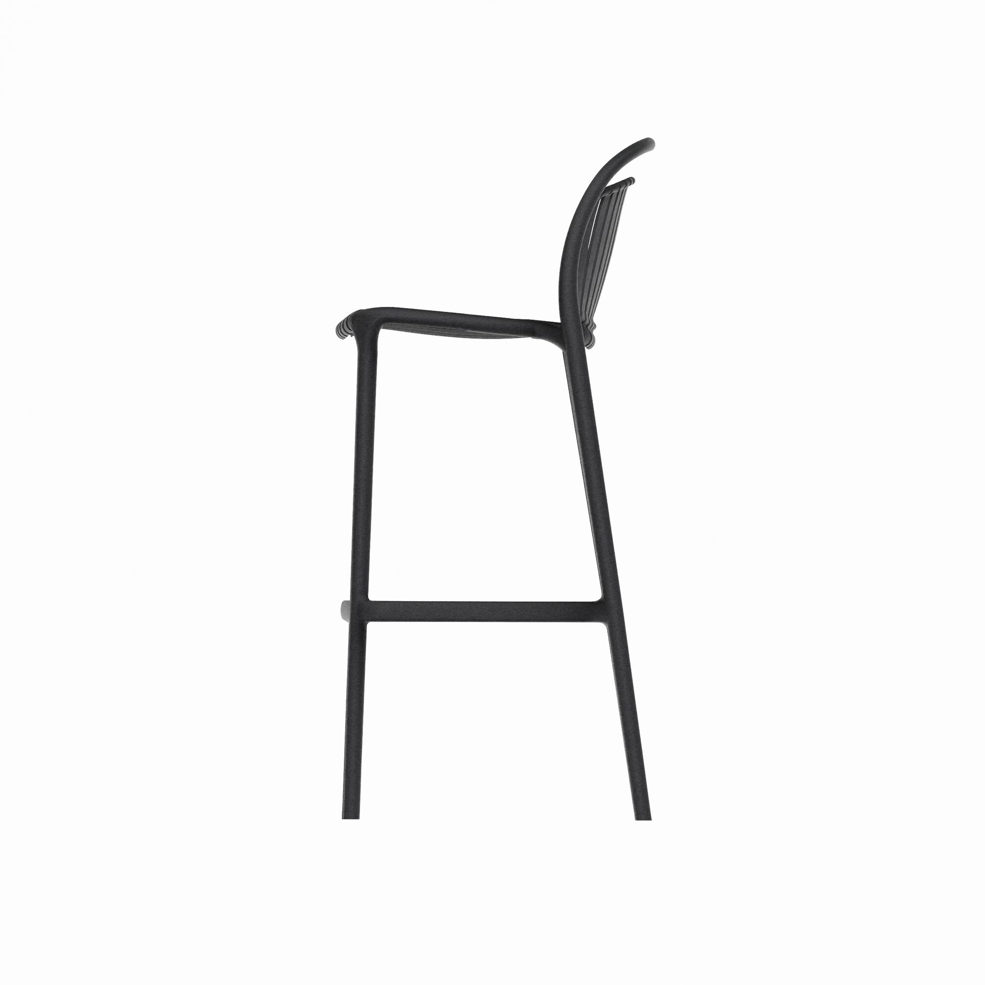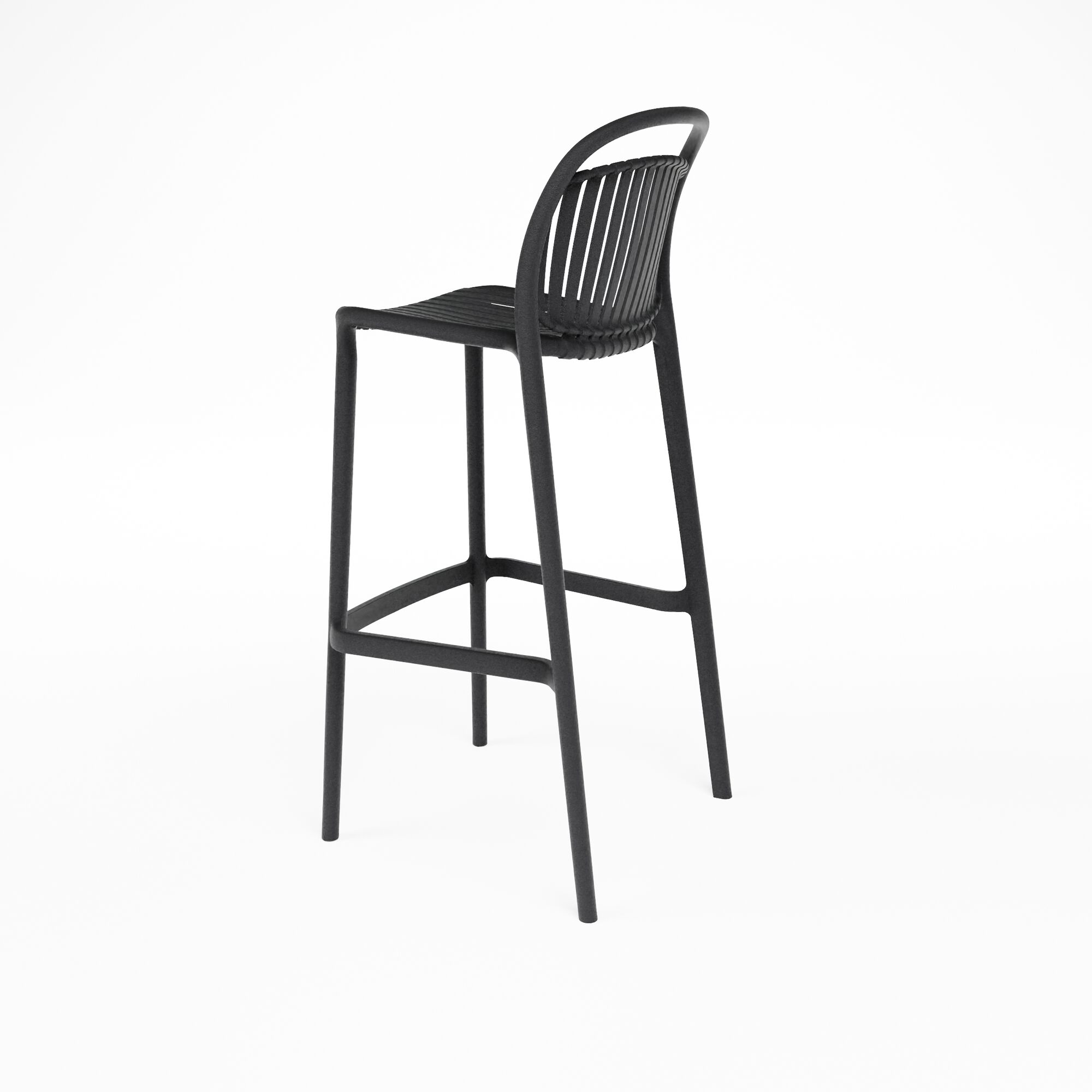 Le tabouret de bar STRATO est renforcé de polypropylène en fibre de verre. Le design, avec des lattes verticales et des courbes douces, est élégant mais durable et convient aussi bien à une utilisation extérieure qu'intérieure sur des tables hautes, telles que des terrasses, des bars ou des îlots de